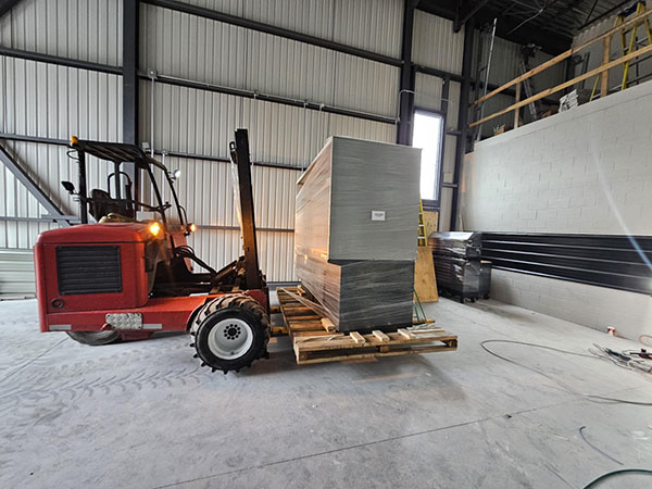 Le moffet est un petit tracteur de type lift à trois roues, extrêmement versatile et mobile, transporté à même la remorque, qui permet de faire la gestion de votre contenu au chargement et au déchargement.